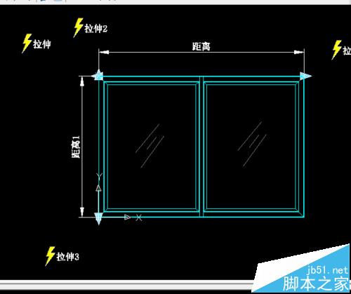 7、完成后的窗塊,如圖,便可以左右上下隨意拉伸大小了這對于立面圖窗的繪制很有幫助,可快速修改拉伸塊。