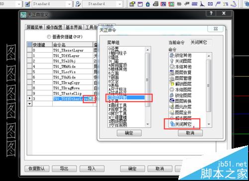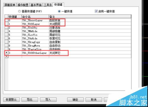 2、彈出【天正自定義】窗口,找到【快捷鍵】菜單,我們為天正快捷鍵添加一個快捷鍵為【3】的【關閉其他】快捷鍵,如圖操作;這里我們會用到其他兩個快捷鍵【0】圖層恢復,【1】圖層關閉如圖