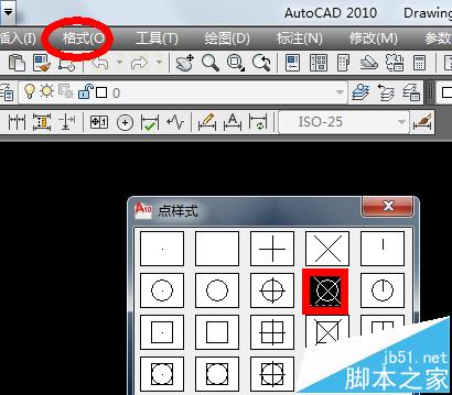 2、先要設置點的大小。選擇“格式”——“點樣式”。如下圖。矩形框是我要選擇的點。這里有必要解釋一下選擇點的目的,主要是為了便于觀看已經定距等分好的線段。等確定了點之后,在點附近做好圖之后,再把點刪掉就好了。