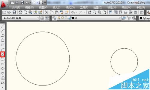 1、cad兩圓公切線畫法很簡單,首先小編使用cad圓工具畫出兩個圓。