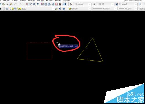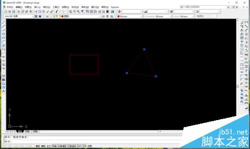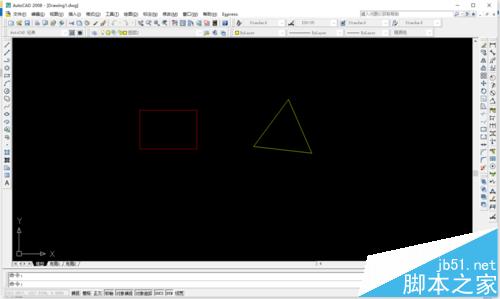 1、打開CAD軟件,在圖層1的狀態下畫一個矩形,在圖層2的狀態下畫一個三角形。