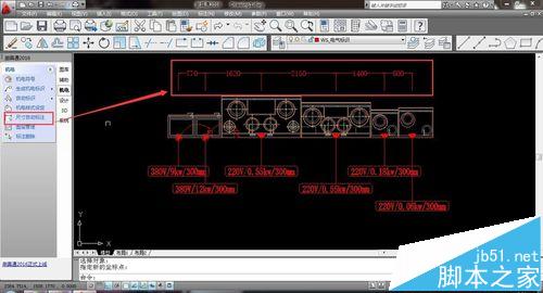 5、標注機電符號之間的尺寸方便施工:機電--尺寸標注--選擇設備--回車確認