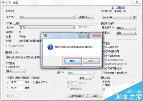 6、是否將此打印樣式表指定給所有布局,點擊是
