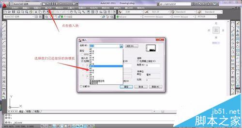 6、下次打開AUTOCAD就會自動為自己設(shè)置的樣式,使用圖框時可以直接選擇插入塊命令,插入自己需要的圖框。