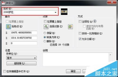 3、下面進行塊重組,選擇需要組成塊的設備零件,然后輸入快捷鍵B,再回車彈出塊定義窗口