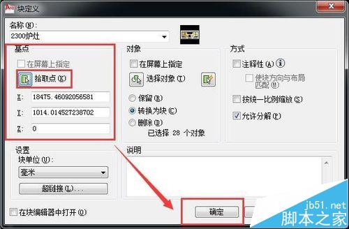 4、輸入塊名稱---然后通過“拾取點”選擇塊的機電,一般選擇設備背面,這個設備在左下角---然后點擊確認