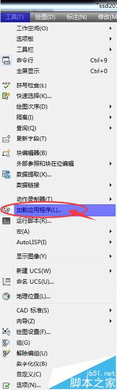 3、接著,我們去AutoCAD里加載 DICTS.LSP文件;如圖所示,點擊“工具”菜單-“加載應用程序(L)...”;