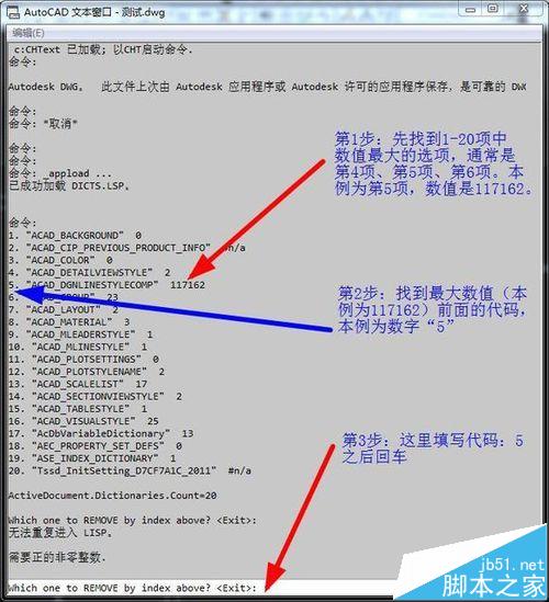 6、比如:圖中的命令5 . "ACAD_DGNLINESTYLECOPM 117162"(設計風格合成效果),尾部數字是117162,是20個命令里面最大的,我們就在圖中最下面輸入“20”,然后敲Enter(回車)鍵。