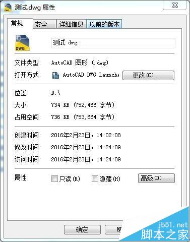 7、接著,我們再看剛剛的.dwg文件,發現它變為了734KB,相對壓縮前的101MB,壓縮率達99.29%。