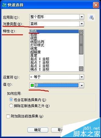 比如現(xiàn)在我要統(tǒng)計(jì)直線,我發(fā)現(xiàn)圖上的直線都是綠色,我可以將特性選為綠色,這個(gè)特性剛剛已經(jīng)說(shuō)了,這個(gè)特性就是好比你查找的條件。