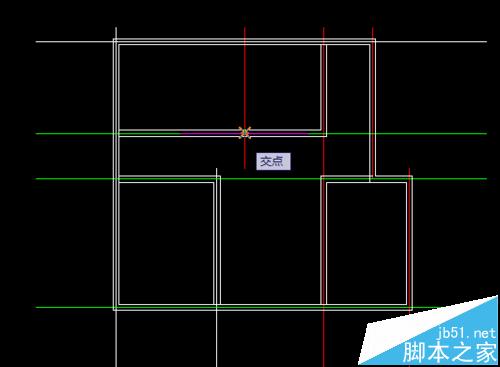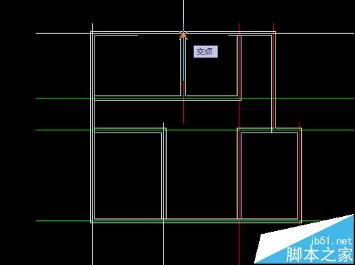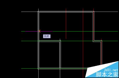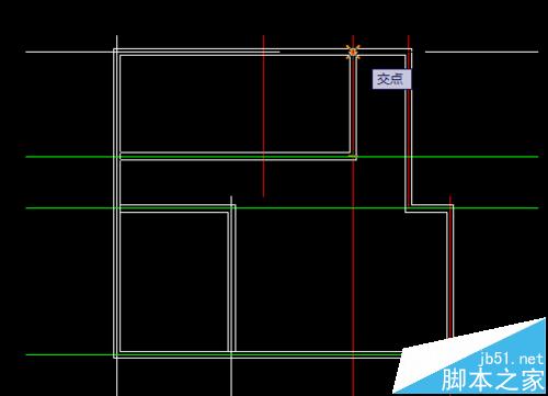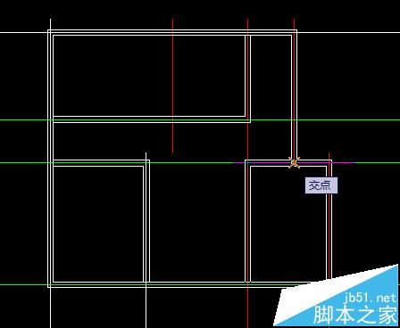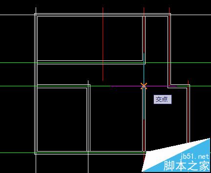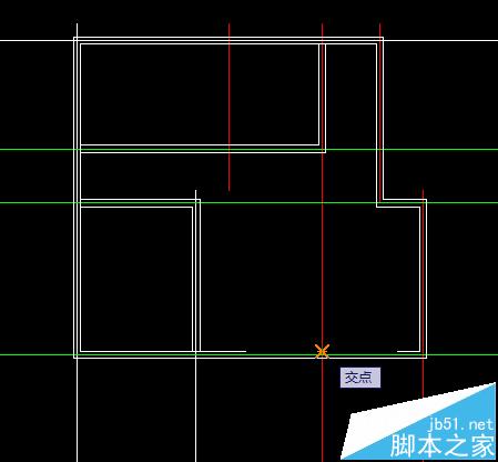 1、上一章我們已經(jīng)把一半的軸線畫完了,因?yàn)槲覀兩弦徽轮v過只需要畫出一半最后在鏡像(跟復(fù)制差不多意思)一下就可以。所以我們只需要畫一半。首先我們要做的就是先把上一章畫的軸線弄完整然后在畫墻線,由于墻線需要很多的交點(diǎn)來完成,所以我們要看我們的軸線是否有足夠的交點(diǎn),當(dāng)初我們畫的軸線就差一個(gè)交點(diǎn),那個(gè)交點(diǎn)是不可避免要?jiǎng)h掉的,所以現(xiàn)在我們畫上就好了,看我們當(dāng)初的軸線的下圖的位置,你會發(fā)現(xiàn)兩條線沒有相交,現(xiàn)在我們讓它相交,發(fā)現(xiàn)下圖中垂直的第二條線與水平的第三條線沒有相交了嗎?讓它相較只需要在命令行輸入“ex”回車。然后點(diǎn)擊下圖中水平的第三條線,回車,然后再點(diǎn)擊下圖中垂直的第二條線就可以了,你會驚奇的發(fā)現(xiàn)他們相交了。