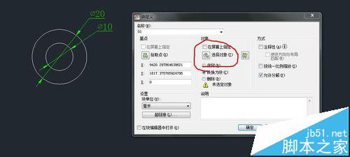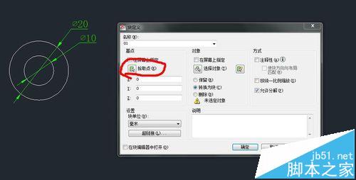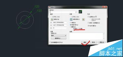 5、四個對象選好,點(diǎn)確定完成塊的創(chuàng)建