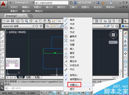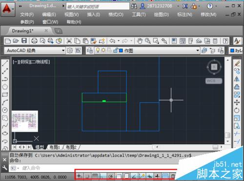 7、可以使用捕捉來繼續作圖,返回到這個作圖界面,根據自己的需要作圖,如果沒能捕捉上自己想要的點,按照方才的方式重新設置即可。