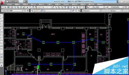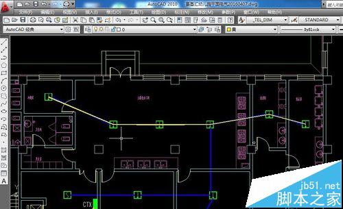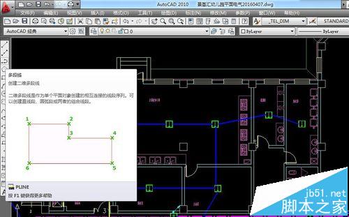 5、選中多段線后在圖紙中沿著線路走向畫出多段線。