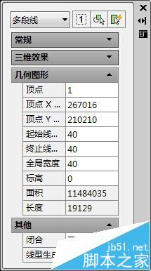 8、在特性對話框中找到幾何圖形,最后一項長度,即為該多段線的長度。