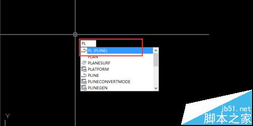 2、接下來在autocad繪圖區域內輸入快捷命令PL,該快捷命令為在圖紙上繪制多段線,如下圖所示。