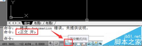 1、首先在電腦上打開autocad 2012繪圖軟件,為了繪制出來的箭頭橫平豎直,先點擊下方的正交模式開啟正交,如下圖所示。