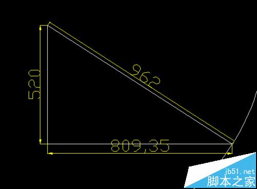 1、首先隨便設一下數值,指定直角三角形的高度為520mm,斜邊長度為962mm,求底邊長度為多少?