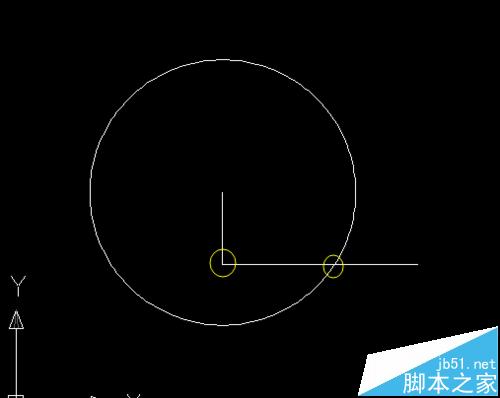 3、點擊圓工具,捕捉直線的上端點,畫一個半徑為962的圓。