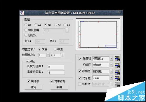 4、在“清華天河圖紙設(shè)置”窗口中我們可以看到有A0到A4五種圖幅,但在繪圖中我們可能遇到更大的尺寸的圖紙,可以對圖幅進(jìn)行相應(yīng)的比例設(shè)置。