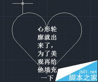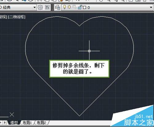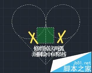 6、運用修剪(快捷鍵tr)刪除多余線條,剩余即為心形。修剪tr——空格——選擇全部——空格——修剪掉中間多余弧——空格,在刪除(快捷鍵e)中間豎線就ok了