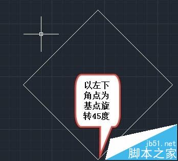 2、以正方形左下角為基點旋轉45度,選中左下角——出現夾點——右鍵旋轉——45度。