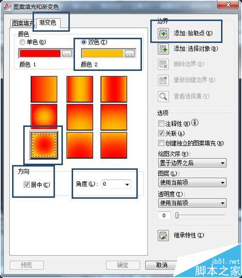 7、為了美觀填充一下心形圖案,快捷鍵h——如圖選擇漸變色雙色——添加拾取點——點心形中間即可——確定。