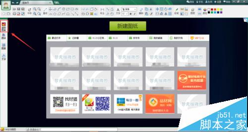 6、點擊CAD迷你畫圖里的新建圖紙,然后點擊左側的超級圖庫,即可從圖庫列表中選擇合適的圖紙插入到繪圖區域了,如下圖所示。