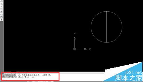 4、輸入“mi”命令,將繪制的半圓沿著剛才畫的線段鏡像,并將線段刪除。