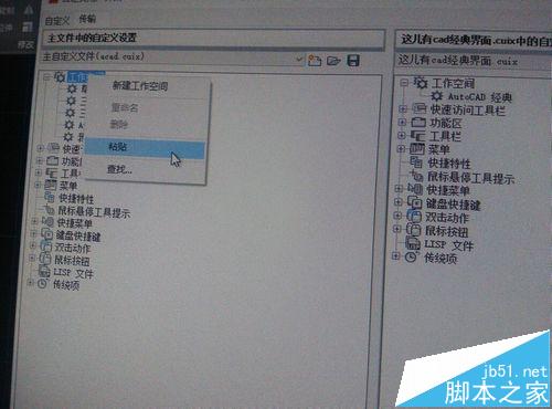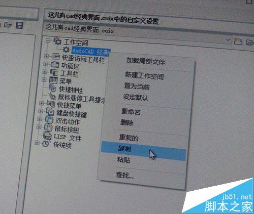 5、復制工作空間中的CAD經典,并在左邊的分裂窗口中粘貼: