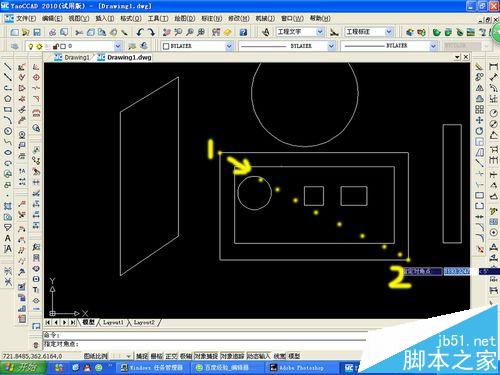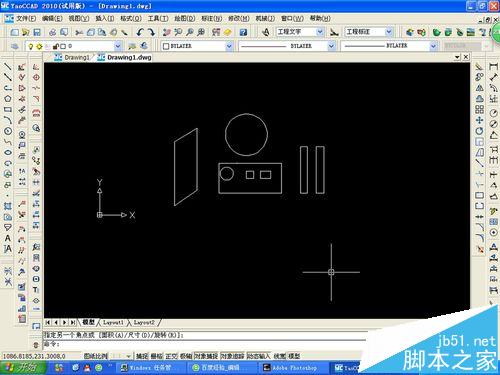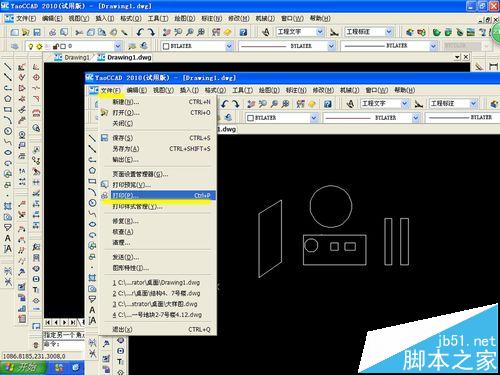 2、再隨便打開一個CAD文件,如圖所示,由于圖中圖案有好幾個,并且位置都不較近,所以我們如何只打印長方形區域呢,往下看
