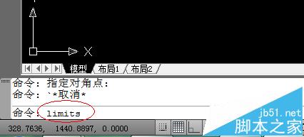 2、輸入命令 limits,這里是不分大小寫的。該命令的意思是重新設置模型空間界限。如下圖,再按回車鍵。