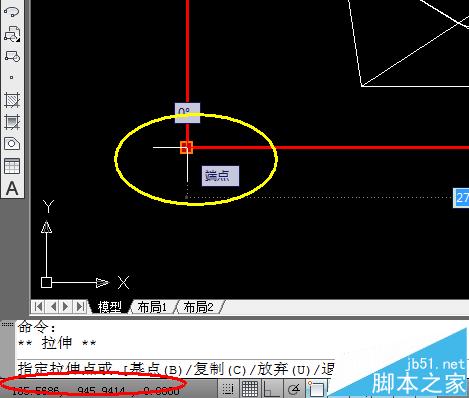 4、當然了,你也可以根據個人的需要設置了。比如,輸入命令 limits 之后,在接著輸入你要設置的圖形界限的。這里會介紹一種情況,如下圖,你要以下圖中的紅色矩形作為圖形界限,你該怎么辦了?