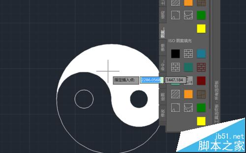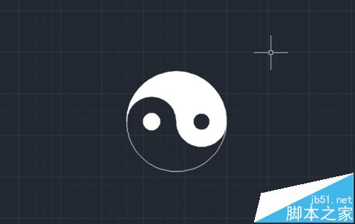7、關閉圖形柵格來看一下最后的結果,太極圖已經全部完成了。我這里只填充了白色的圓和大圓白色的一半,另外一半由于背景色是黑灰色了,所以就不填充了。可以在圖案填充里面找到喜歡的顏色進行填充。