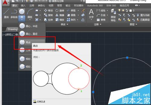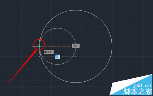 2、設置完成以后點擊確定,來到繪圖界面,在剛才的那個大圓里面我們需要畫2個半徑為30的小圓。利用對象捕捉和圓工具中的兩點模式,先捕捉大圓圓心,然后鼠標移動捕捉到大圓左邊的象限點,畫出第一個小圓,重復此步驟畫出另外一個圓。