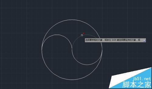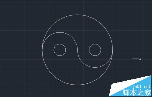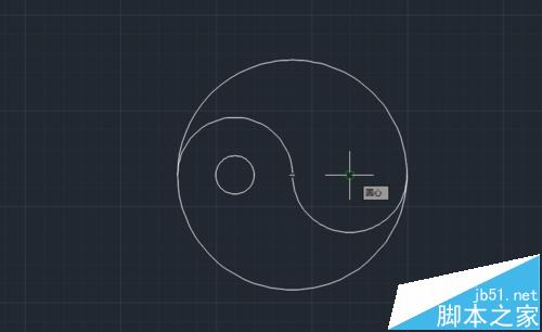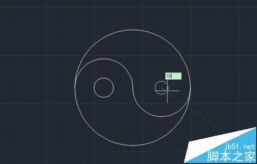 5、完成以后找到兩個小圓的圓心,再畫2個半徑為10的小一點的圓。這樣太極的輪廓已經出來了。