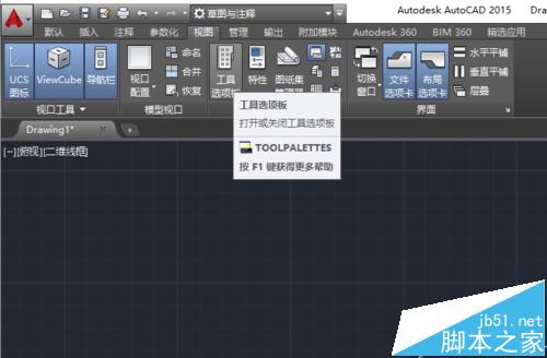 6、下面我們要給輪廓上色,在視圖里面點擊工具選項板,打開以后找到圖案填充。點擊一下圖案中的實體填充,然后在要上色的地方單擊一下。實體顏色顯示的黑色,但并不是說一定就是黑色,而是依據背景色來的,因為我的背景色是白色,所以填充的也是白色。
