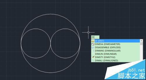 3、畫好以后三個圓兩兩相切,我們用di命令測量一下每個圓的直徑。兩個小圓直徑都是60,大圓直徑為120.