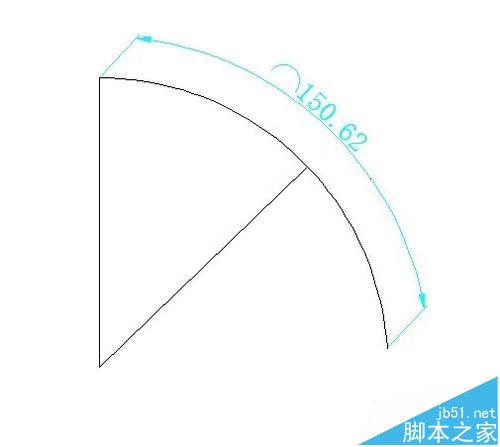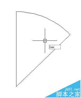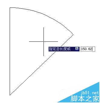 3、我們輸入len回車,輸入t回車,輸入150.62回車,點擊選中弧線,弧線就立刻變成我們要的弧線了。