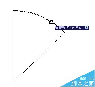 2、我們修剪掉弧線,得到一部分圓弧線。這時我們看如圖,我們需要使用命令將現有的弧線變為我們制定的弧線