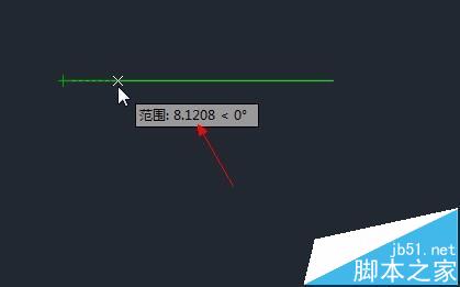 2、正常的情況下,選擇再畫直線,從已畫線段的左端點出發,會有自動追蹤的標記。如圖,箭頭所指的數字是左端點到鼠標的距離。