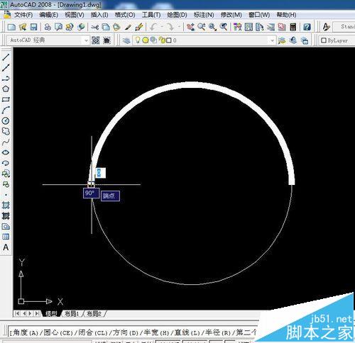2、使用多段線命令,選中圓上一點,點擊下方命令欄的‘’圓弧A‘’。