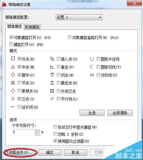 3、會(huì)彈出“增強(qiáng)捕捉設(shè)置”--點(diǎn)擊“過(guò)濾器選項(xiàng)”