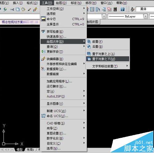 鼠標點擊“工具菜單”-“繪圖順序”,根據實際情況選擇相應的操作。