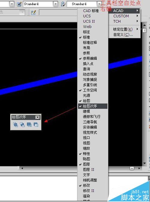 在工具欄空白處點擊鼠標右鍵,在彈出的菜單中打開“繪圖次序”工具欄。