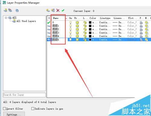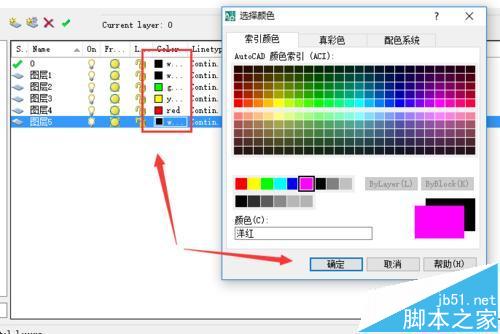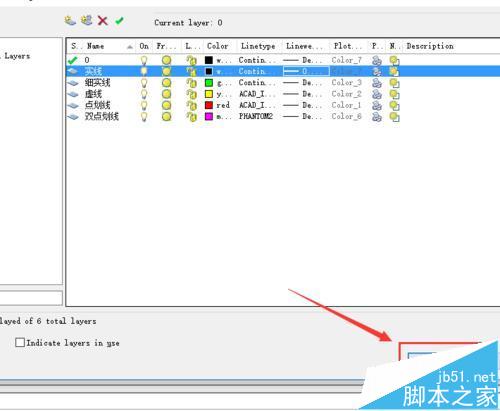 5、然后我們就是選擇我們每個圖層的線段的顏色涉資,這里我們的0圖層是不需要我們設置的,對于我們來說,0圖層是不能夠改名的,所以我們一般不用,然后其他的就根據標準設置顏色就可以了。