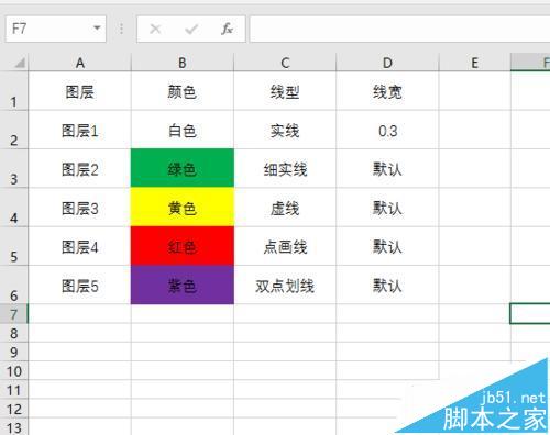 1、首先我們看一下,我們機械圖層設置需要那些信息,以及我們的標準是什么,這里我們需要的是五個圖層,然后每個圖層的設置的線段設置以及我們的顏色設置,都是按照下面的標準來的。