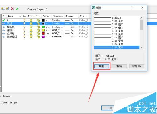 7、然后我們就是對線寬的設置了,這里我們可以看到我們只需要對實線的線寬設置一下就可以了,實線的線寬設置成為0.3,默認的線寬是0.1,如果我們選擇不同的紙張的話,那么我們就需要對應的線型經行改變。