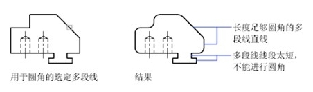提示:如果想刪除多段線上的圓角和弧線,也可以使用“多段線(P)”選項,只需將圓角設置為0,軟件將刪除該弧線段并延伸直線,直到它們相交。