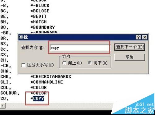3、打開后,按Ctrl+F搜索想要更改的快捷鍵,例如:copy,開始默然是CO